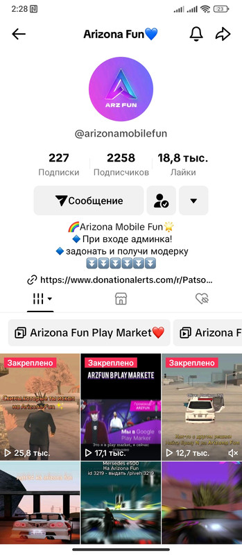 3: Подписка на наш тикток ( С уведомлением) - tiktok.com/@arizonamobilefun